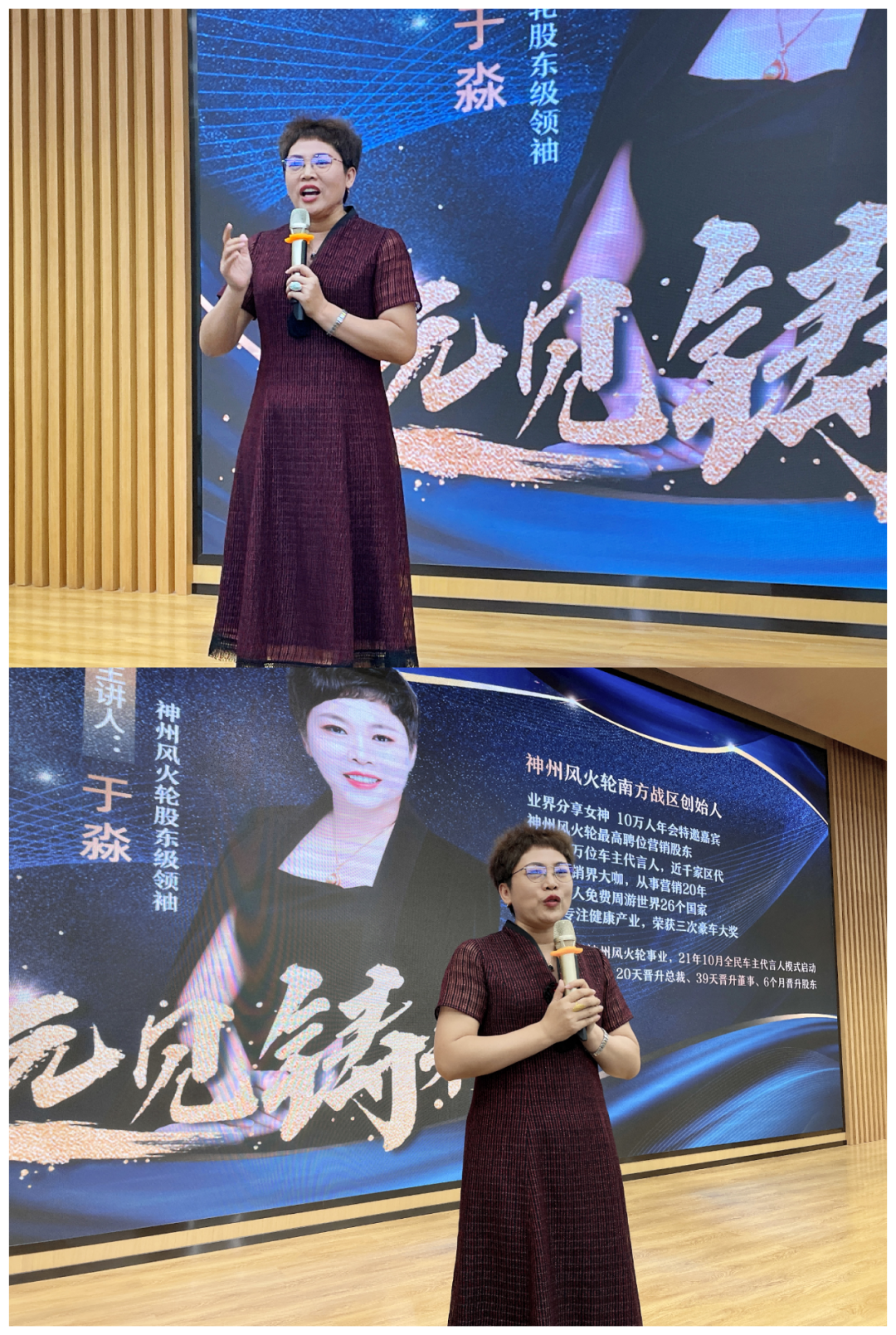 神州風(fēng)火輪眾成國際系統(tǒng)創(chuàng)始人/市場營銷股東于淼女士針對全民代言人模式進行解讀,她從行業(yè)數(shù)據(jù)分析、消費趨勢走向等方面,解讀了代言人模式的進階職級以及利潤所得。公司井噴式的盈利模式,對合作伙伴在營銷幫扶等方面提供強有力的保障,同時為大家在一線的銷售提供強有力的后盾。