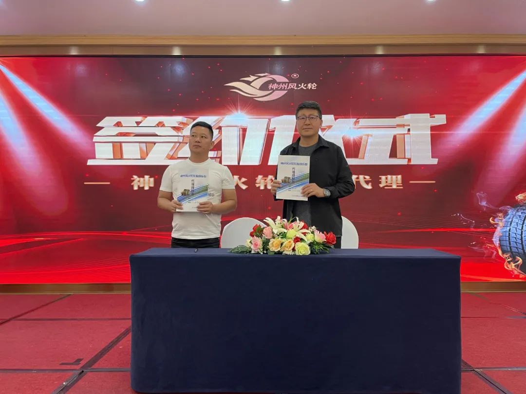 遼寧神州風(fēng)火輪輪胎科技有限公司戰(zhàn)略顧問(wèn)崔邵焜先生代表公司與意向代理商進(jìn)行簽約儀式,本次招商會(huì)共有4位高瞻遠(yuǎn)矚的意向代理商完成簽約,成功鎖定4城。獨(dú)行快,眾行遠(yuǎn)。神州風(fēng)火輪將與代理商在合作的道路上并肩前行,追求進(jìn)步,為代理商的發(fā)展壯大持續(xù)不斷地注入能量。