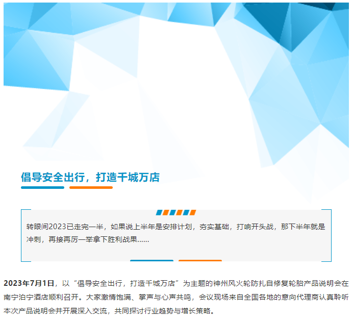 倡導(dǎo)安全出行,打造千城萬(wàn)店”神州風(fēng)火輪2023年南寧站產(chǎn)品說(shuō)明會(huì)在所有來(lái)賓的掌聲中圓滿落幕。未來(lái),隨著代理商隊(duì)伍的不斷壯大,神州風(fēng)火輪還將繼續(xù)增強(qiáng)賦能力度,提升營(yíng)銷效率,優(yōu)化代理體驗(yàn),實(shí)現(xiàn)深度合作。輪胎行業(yè)已然是風(fēng)口,請(qǐng)把握機(jī)遇,加入神州風(fēng)火輪大家庭,一起共創(chuàng)財(cái)富、共創(chuàng)未來(lái)!