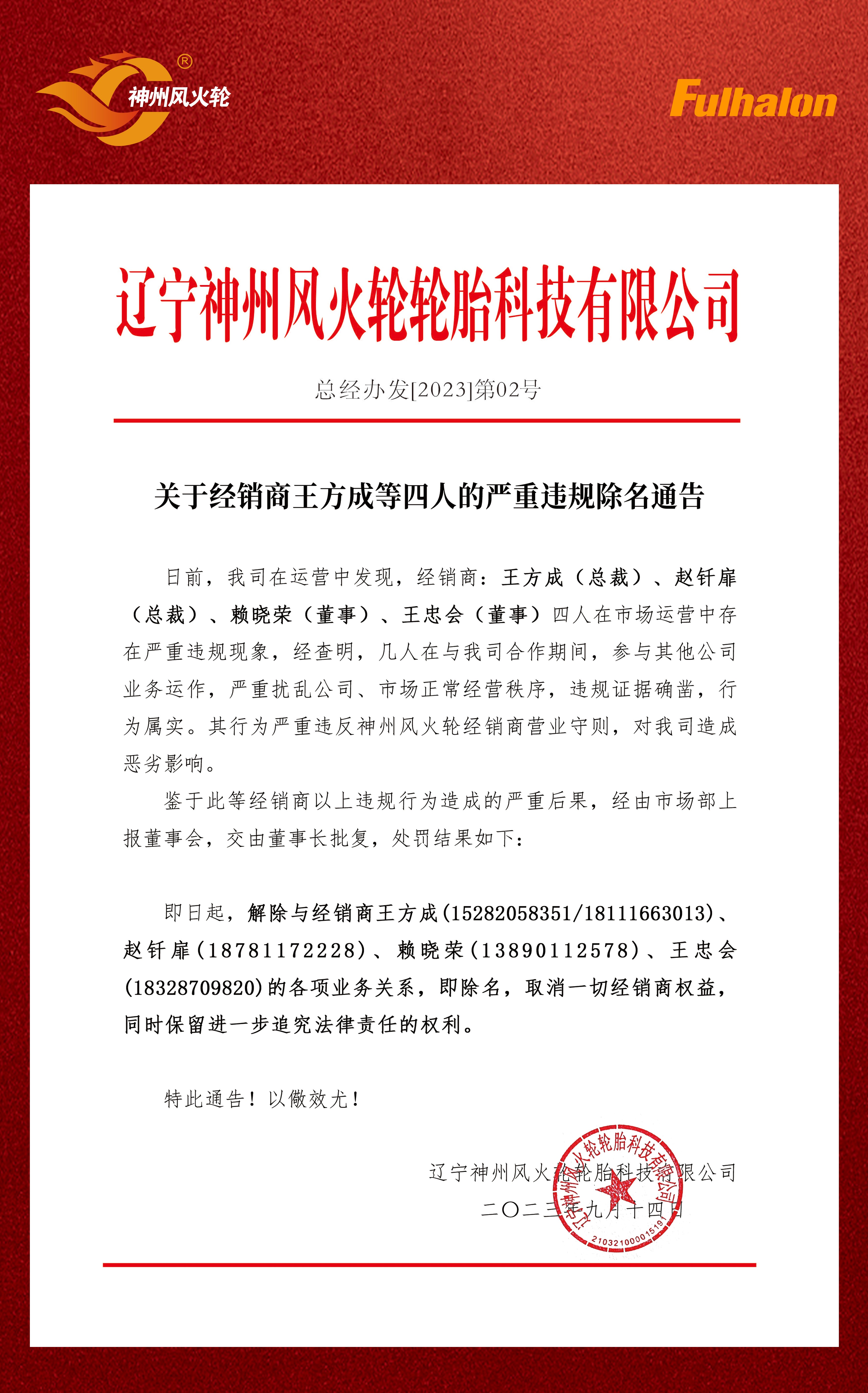 關(guān)于神州風(fēng)火輪經(jīng)銷商嚴(yán)重違規(guī)違紀(jì)的處理通告!